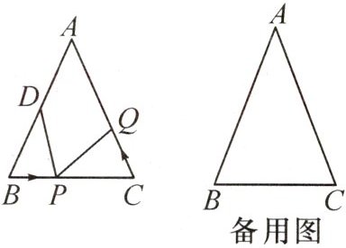 ∴$\begin{cases}12 = 16 - 4t, \\4t = at,\end{cases}$ 解得$\begin{cases}t = 1, \\a = 4.\end{cases}$综上所述,当a的值为6、t的值为2或a的值为4、t的值为1时,△DPB与△PCQ全等.