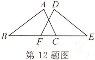 12. 茗茗用同种材料制成的金属框架如图所示,已知∠B=∠E,AB=DE,BF=EC,△ABC的周长为24 cm,CF=3 cm,则制成整个金属框架所需这种材料的长度为