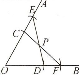 10. 如图,已知∠AOB,以点O为圆心,任意长为半径画弧,分别交OA,OB于点C,D;再以点O为圆心,大于OC的长为半径画弧,分别交OA,OB于点E,F;连接CF,DE,CF与DE相交于点P,则下列结论错误的是(