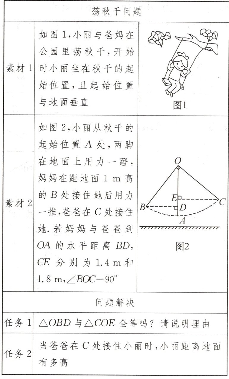 ∴△OBD≌△COE(AAS).任务2:设OA的延长线与地面相交于点M.由任务1可知,△OBD≌△COE,
