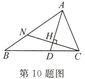 10. 如图,在$△ABC$中,$∠BAC$的平分线$AD$交$BC$于点$D$,过点$C$作$CN⊥AD$交$AD$于点$H$,交$AB$于点$N$。若$AB = 5$,$AC = 3$,则$BN =$
