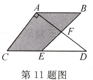 11. 如图,在$△ACD$中,$∠CAD = 90^{\circ}$,$AC = 6$,$AD = 8$,$AB// CD$,$E$是$CD$上一点,$BE$交$AD$于点$F$。若$AB = DE$,则图中阴影部分的面积为