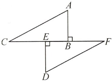 5. 如图,点$C$,$E$,$B$,$F$在同一条直线上,$AB\perp CF$于点$B$,$DE\perp CF$于点$E$,$AC = DF$,$AB = DE$。求证:$AC// DF$。