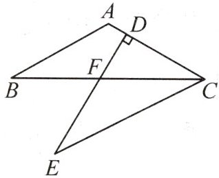 9. 如图,$CB$为$\angle ACE$的平分线,$F$是线段$CB$上一点,$CA = CF$,$\angle B = \angle E$,延长$EF$与线段$AC$相交于点$D$。