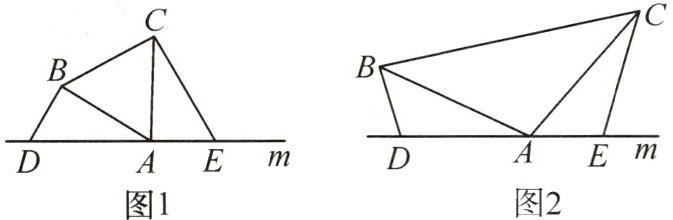 5. A|石家庄外国语校本经典题 在直线m上依次取互不重合的三个点D,A,E,在直线m上方有AB=AC,且满足∠BDA=∠AEC=∠BAC=α.