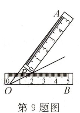 9. 小明同学在学习了全等三角形的相关知识后发现,只用两把完全相同的长方形直尺就可以作出一个角的平分线。如图,一把直尺压住射线 $OB$,另一把直尺压住射线 $OA$ 并且与第一把直尺相交于点 $P$,小明说:“射线 $OP$ 就是$\angle BOA$的平分线。”他这样做的依据是(