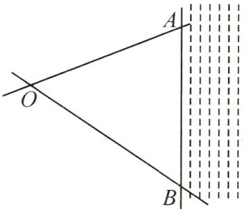 13. 新考向 真实情境 如图,铁路 $OA$ 和铁路 $OB$ 相交于点 $O$ 处,河道 $AB$ 与铁路分别相交于点 $A$ 处和点 $B$ 处。若在河岸上建一座水厂 $M$,要求 $M$ 到铁路 $OA$,$OB$ 的距离相等,则该水厂 $M$ 应建在图中的什么位置?请在图中标出点 $M$ 的位置。