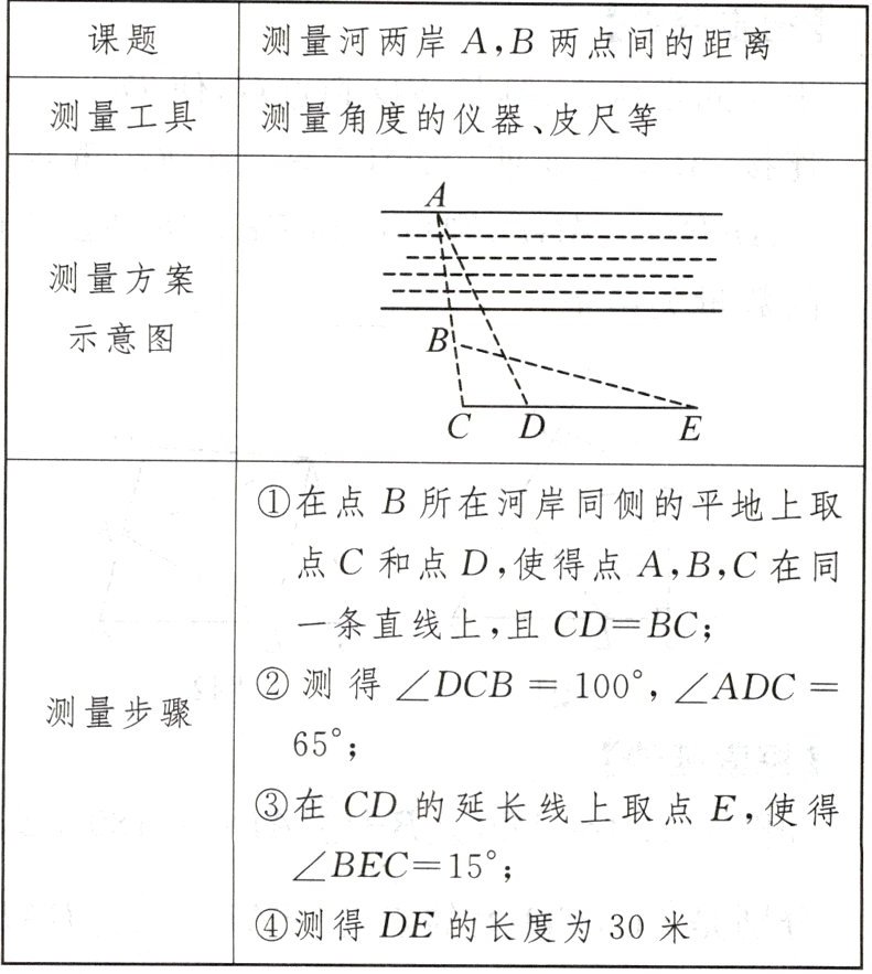 7. 新考向 真实情境 学习完全等三角形这章后,数学兴趣小组同学就“测量河两岸$A$,$B$两点间的距离”这一问题,设计了如下方案.