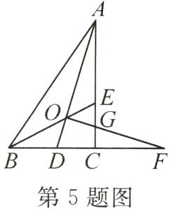 5. (2024·南充期末)如图,在$Rt\triangle ABC$中,$\angle ACB = 90^{\circ}$,$Rt\triangle ABC$的角平分线$AD$,$BE$相交于点$O$,过点$O$作$OF\perp AD$,交$BC$的延长线于点$F$,交$AC$于点$G$,有下列结论: