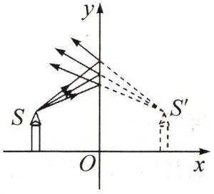 11. 新考向 跨学科 如图,这是蜡烛的平面镜成像原理图,以水平面为 $ x $ 轴,镜面侧面为 $ y $ 轴(镜面厚度忽略不计)建立平面直角坐标系。若某时刻火焰顶端 $ S $ 的坐标是 $ (x - 2,2) $,此时对应的虚像 $ S' $ 的坐标是 $ (3,y) $,则 $ 3x + y = $ (