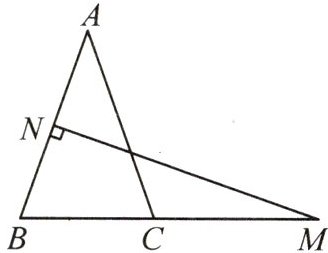 17. 如图,在 $\triangle ABC$ 中,$AB = AC$,$AB$ 的垂直平分线交 $AB$ 于点 $N$,交 $BC$ 的延长线于点 $M$.