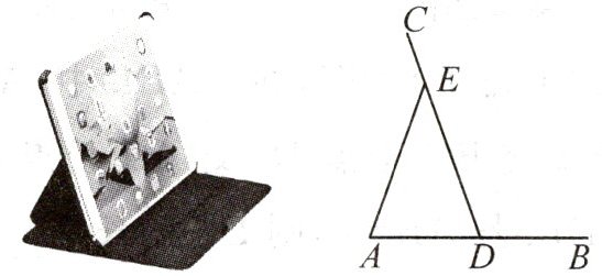 12. 新考向 真实情境 某平板电脑支架的示意图如图所示,其中 $AB = CD$,$EA = ED$,为了使用的舒适性,可调整 $\angle AEC$ 的大小.若 $\angle AEC$ 增大 $16^{\circ}$,则 $\angle BDE$ 的变化情况是(