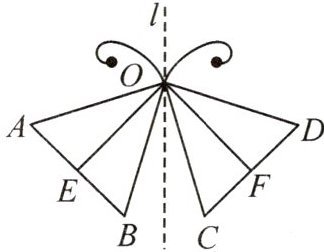 13. (2024·福建)小明用两个全等的等腰三角形设计了一个“蝴蝶”的平面图案,如图所示.其中 $\triangle OAB$ 与 $\triangle ODC$ 都是等腰三角形,且它们关于直线 $l$ 对称,点 $E$,$F$ 分别是底边 $AB$,$CD$ 的中点,$OE \perp OF$,则下列推断错误的是(
