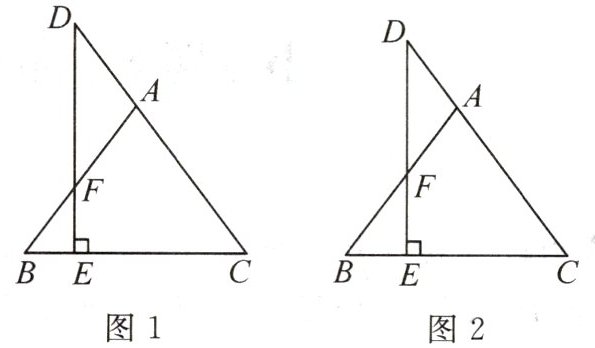 13. 如图 1,在△ABC 中,AB = AC,D 为 CA 延长线上一点,且 DE ⊥ BC 交 AB 于点 F.