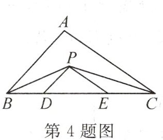 4. 如图,在 $\triangle ABC$ 中,$BC = 15$ cm,$BP$,$CP$ 分别是 $\angle ABC$ 和 $\angle ACB$ 的平分线,且 $PD // AB$,$PE // AC$,则 $\triangle PDE$ 的周长为