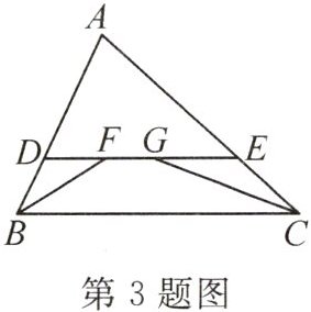 3. 如图,在 $\triangle ABC$ 中,$DE // BC$,$\angle ABC$ 和 $\angle ACB$ 的平分线分别交 $DE$ 于点 $F$,$G$。若 $FG = 2$,$DE = 6$,则 $DB + EC$ 的值为