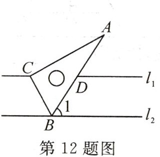12. 含 $30^{\circ}$ 角的直角三角板与直线 $l_1$,$l_2$ 的位置关系如图所示,已知 $l_1// l_2$,$\angle 1 = 60^{\circ}$,以下四个结论中正确的是