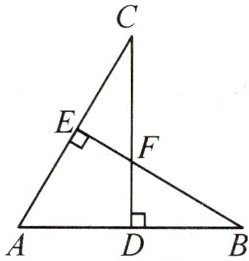(1)得$AC = AB = BC$,$\therefore \triangle ABC$是等边三角形。$\therefore \angle A = \angle ABC = \angle ACB = 60^{\circ}$。在$Rt\triangle ABE$中,$\angle ABE = 90^{\circ} - \angle A = 30^{\circ}$,在$Rt\triangle BFD$中,$BF = 2DF$。在$Rt\triangle ADC$中,$\angle ACD = 90^{\circ} - \angle A = 30^{\circ}$,$\therefore \angle ABE = \angle ACD$。又$\because \angle ABC = \angle ACB$,$\therefore \angle FBC = \angle FCB$,$\therefore CF = BF$,$\therefore CF = 2DF$。