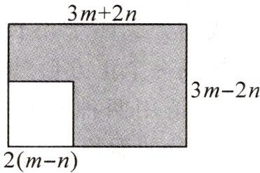 12. 如图,在长为$3m + 2n$,宽为$3m - 2n$的长方形铁片上,挖去边长为$2(m - n)$的小正方形铁片,则剩余部分的面积为$\quad$