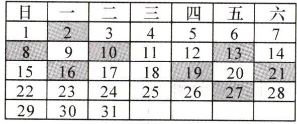 在月历表上,我们可以发现其中某些数满足一定的规律. 如图,这是某月的月历,我们任意选择两组数(阴影部分),分别将每组数中相对的两数相乘,再相减,得到的结果都是 48. 例如:$8×10 - 2×16 = 48$,$19×21 - 13×27 = 48$.