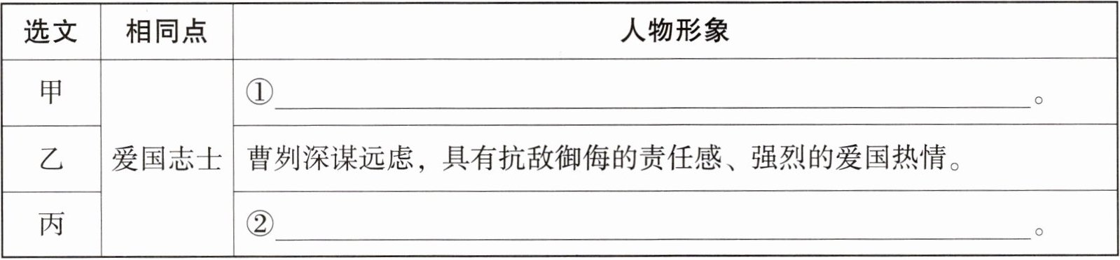 5. 上面三篇选文中均有一位爱国志士,请比较他们的形象特征,完成下表。