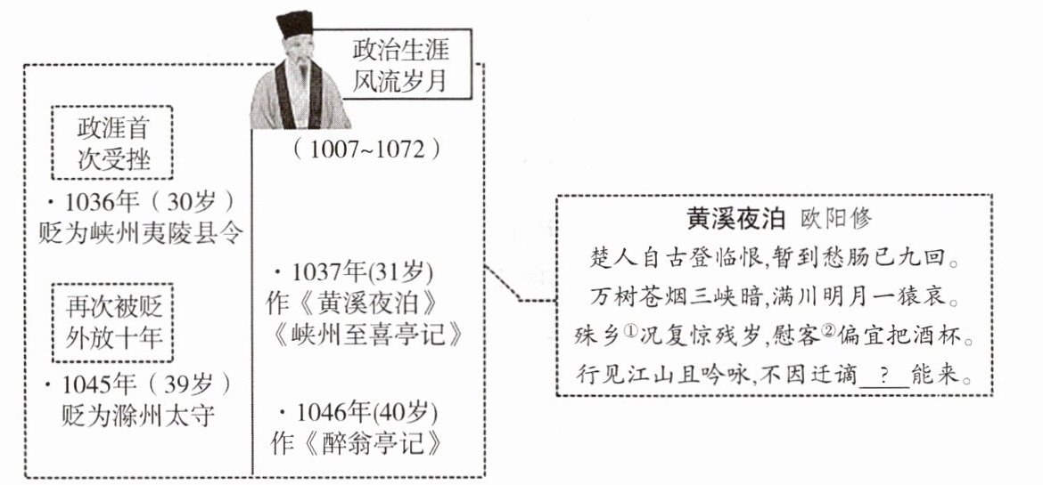 [新考法·链接古诗词] 有同学提出,欧阳修精神可作为“自强不息”活动的材料,于是班级开展了“欧阳修不屈的一生”专题探究活动,请你完成任务。(14 分)