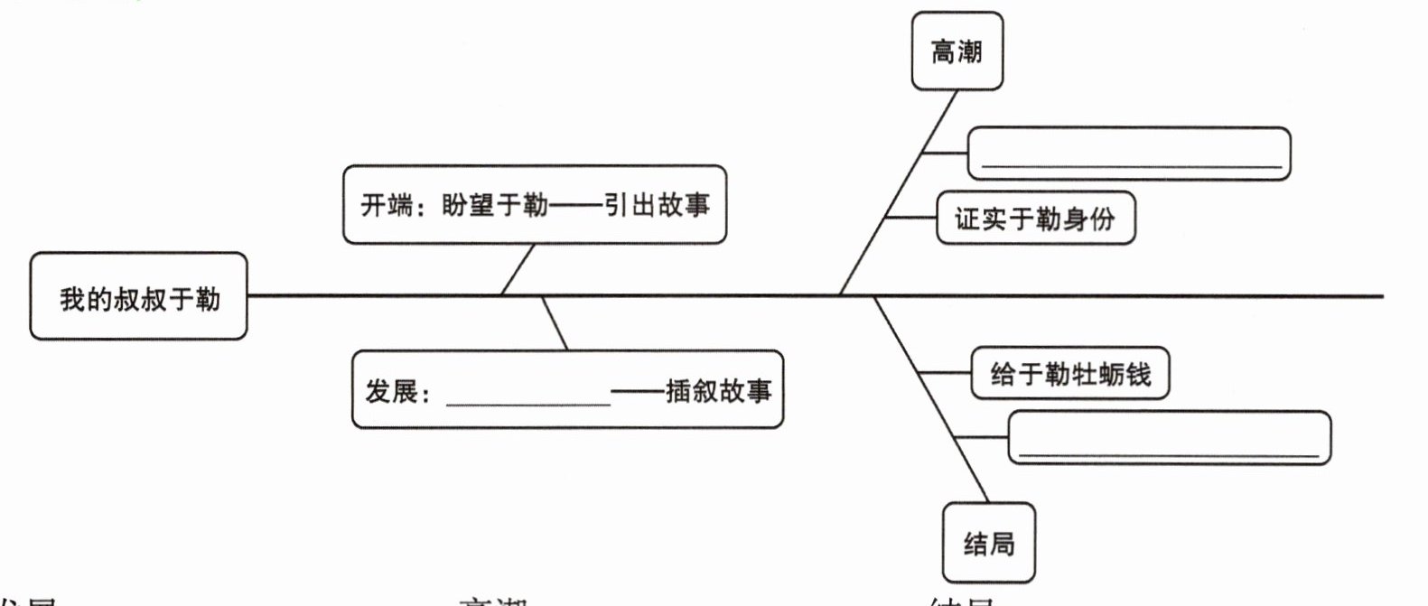 4.【梳理小说情节】根据提示,把《我的叔叔于勒》的思维导图补充完整。(课本 P82 思考探
