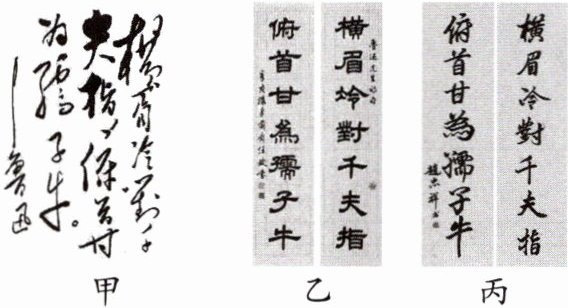 3. 示例一:甲,因为这幅作品笔画连绵、纵横挥洒、恣意横生,是草书,它正是鲁迅先生面对封建腐败现象,毫不妥协的斗争精神的写照。