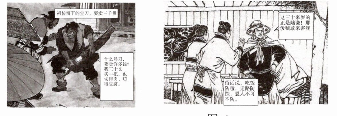 5. [新考法·跨学科] 下面两幅图都选自《水浒传》连环画(人民美术出版社出版),请说出图中的人物分别是谁。(4分)