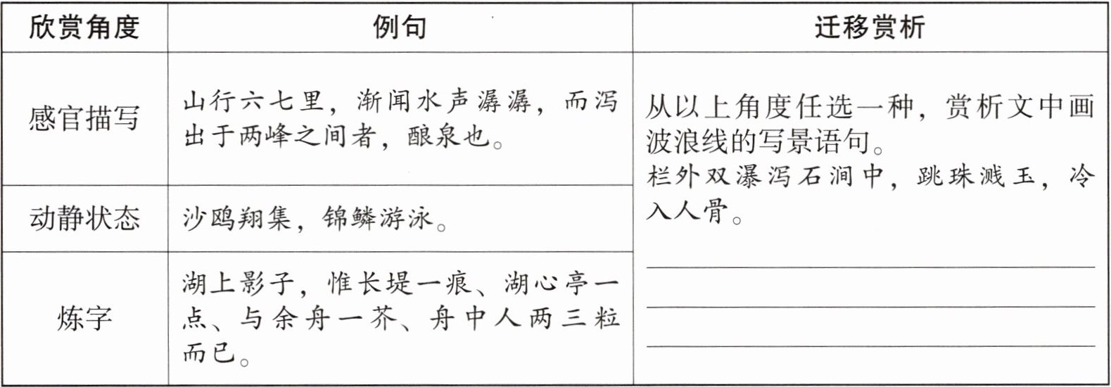 12. 学习欣赏角度,补充迁移赏析。(3分)