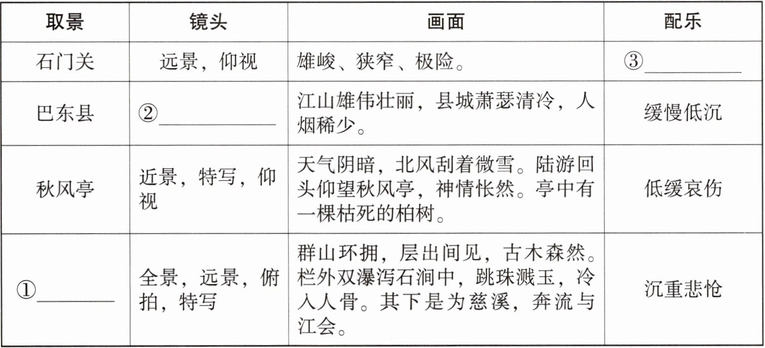 13. ①白云亭 ②近景,特写 ③激昂惊心