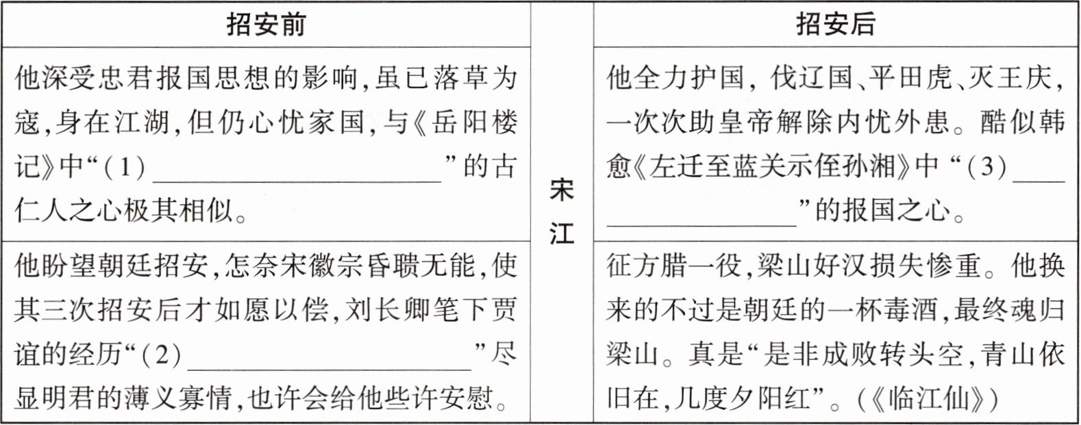 10. [新考法·知识融合] 结合小说中的情节内容,填写相应的古诗文句子。(6分)