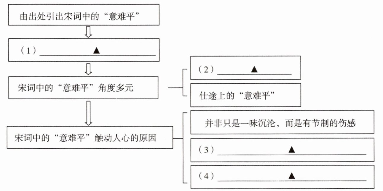 ⑤如仕途上的“意难平”。可以读秦观,在“雾失楼台,月迷津渡”中,期待“驿寄梅花,鱼传尺素”,品饮“桃源望断无寻处”“砌成此恨无重数”的无奈;可以读蒋捷,从“少年听雨歌楼上”的意气风发到“壮年听雨客舟中”的壮志未酬,至晚年“听雨僧庐下”“一任阶前、点滴到天明”的与时光握手言和。