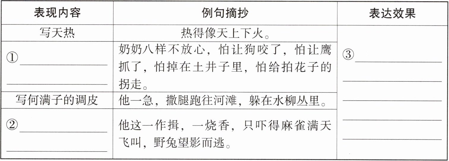 (2)《蒲柳人家》使用了大量的口语、俗语。请根据文中摘抄的相关语句,完成下表,并分析表达效果。(课本 P41 阅读提示)
