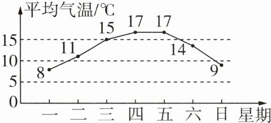 11 教材操作·思考变式[2025承德二中月考]某市某一周的每日平均气温(℃)的统计结果如图所示,则这七天的每日平均气温的众数是(