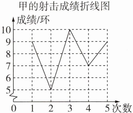 7 [2025宁德月考]在我校射箭队的一次训练中,甲、乙两名运动员前5箭的平均成绩相同,教练将两人的成绩绘制成如下尚不完整的统计图表。