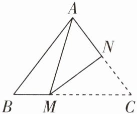 所以AM = CM,AN = $\frac{1}{2}$AC = $\frac{5}{2}$,MN⊥AC。