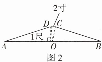 4 [新趋势·数学文化][2024沈阳浑南区期末]《九章算术》是古代东方数学代表作,书中记载:今有开门去阃一尺,不合二寸。问门广几何。题目大意:如图1,2(图2为图1的平面示意图),推开双门,双门间隙CD的长为2寸,点C和点D距离门槛AB都为1尺(1尺= 10寸),则AB的长是( )