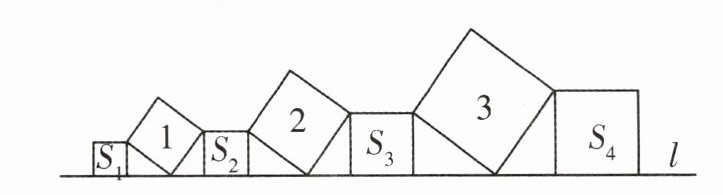 6 [2025贵阳月考]在直线l上依次摆放着七个正方形(如图)。已知斜放的三个正方形的面积分别是1,2,3,正放的四个正方形的面积依次是$S_{1}$,$S_{2}$,$S_{3}$,$S_{4}$,则$S_{1}+S_{2}+S_{3}+S_{4}= $____。