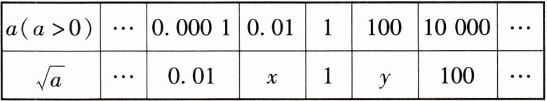 $ x = \sqrt { 0.01 } = 0.1 $, $ y = \sqrt { 100 } = 10 $。
