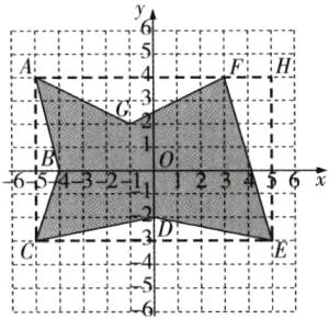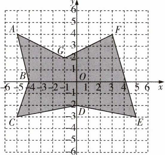4 如图,在平面直角坐标系中,点A,B,C,D,E,F,G的坐标分别为(-5,4),(-4,0),(-5,-3),(0,-2),(5,-3),(3,4),(-1,2),求图中阴影部分的面积。