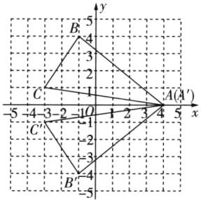 (2) 点 $ A' $ 的坐标为 $ (4,0) $,点 $ B' $ 的坐标为 $ (-1,-4) $,点 $ C' $ 的坐标为 $ (-3,-1) $。