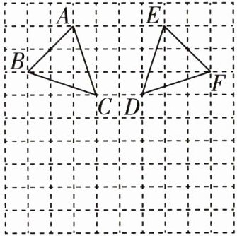 13 [2025昭通期中]如图所示的正方形网格中,每个小正方形的边长都为1,△ABC,△EFD的顶点都在网格线的交点上,在图中建立平面直角坐标系xOy,使△ABC与△EFD关于y轴对称,点C的坐标为(-1,1)。