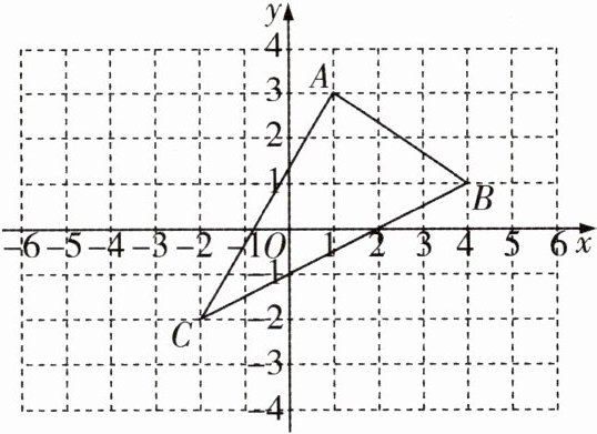 14 [2024宁波海曙区四校期中联考]如图,在平面直角坐标系中,△ABC的三个顶点分别是A(1,3),B(4,1),C(-2,-2)。