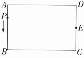 15 抽象能力 如图,已知长方形ABCD中,$AB= CD= 16,BC= DA= 24$,E为CD边的中点,P为长方形ABCD边上的动点,动点P以4个单位/秒的速度从点A出发,沿着$A→B→C→E$运动到点E停止。设点P运动的时间为t秒,$\triangle APE$的面积为y。