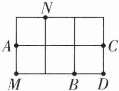 3 教材习题变式[2025西安高新一中期末]如图,小正方形组成的$3×2$网格中,每个小正方形的顶点称为格点。点A,B,C,D,M,N均在格点上,其中A,B,C,D四个点中能与点M,N构成一个直角三角形的是点
