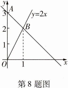 8 [2025内江月考]如图,过点A的一次函数的图象与正比例函数$ y = 2x $的图象相交于点B,则这个一次函数的表达式是 (