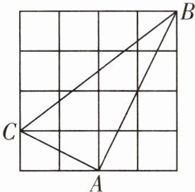 C A项,AB² = 2² + 4² = 20,结论正确,不符合题意;B项,因为AC² = 1² + 2² = 5,AB² = 2² + 4² = 20,BC² = 3² + 4² = 25,所以AC² + AB² = BC²,所以∠BAC = 90°,结论正确,不符合题意;C项,S△ABC = 4 × 4 - $\frac{1}{2}$ × 3 × 4 - $\frac{1}{2}$ × 1 × 2 - $\frac{1}{2}$ × 2 × 4 = 5,结论错误,符合题意;D项,设点A到直线BC的距离为h,因为BC² = 3² + 4² = 25,所以BC = 5,则$\frac{1}{2}$ × 5 × h = 5,解得h = 2,即点A到直线BC的距离是2,结论正确,不符合题意。