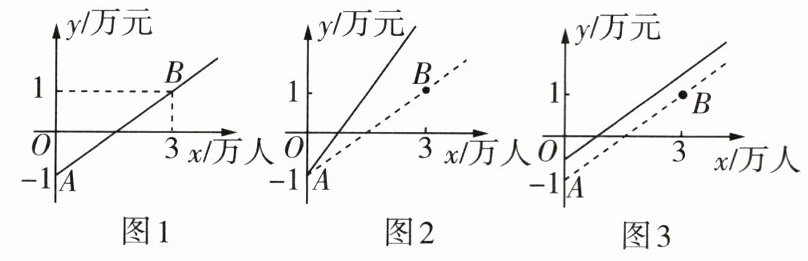 如果分别按照上述两种方法运营,那么收支差额y(万元)与乘客数量x(万人)之间的函数关系发生了变化,你认为在图2和图3中,哪个图象反映了按方法1运营的函数关系?请说明理由。