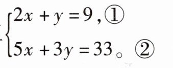 把③代入②,得 $5x + 3(9 - 2x) = 33$,解得 $x = -6$。